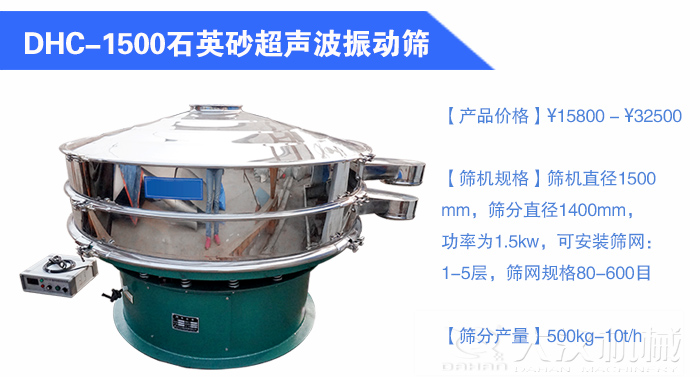 超聲波振動篩常規型號有:DHC-400、DHC-600、DHC-800、DHC-1000、DHC-1200、DHC-1500、DHC-1800、DHC-2000等。根據每小時10噸的篩分產量,您使用直徑1500mm和直徑1800mm的超聲波振動篩就可以完成產量要求。下面小編就為您重點介紹一下這兩個型號的振動篩。