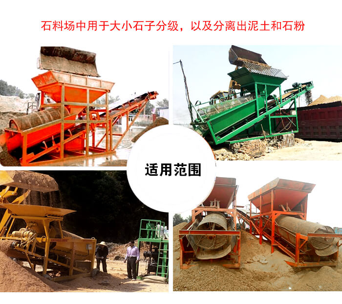 滾筒篩土同時對物料的適應能力強,粘性、濕度大、臟、雜等各種性質的物料都能篩分。石料場中用于大小石子分級,以及分離出泥土和石粉。化工選礦行業用于大小塊狀物分級及分離粉狀物質。