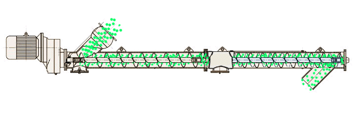 3、輸送過程:由于螺旋的旋轉運動,物料被連續地推送和輸送,沿著輸送機的長度方向逐步向出料口輸送。